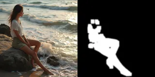 For Person B, we must create a mask for the parts/clothes where the replacement should happen. This is done by using image segmentation to generate a mask of the segmented parts of the image. This time, we use the clothes segmentation from https://github.com/1038lab/ComfyUI-RMBG/tree/main since it allows us to specify body parts and regions more freely. In this case, we also want to use a more narrow mask and a bit of blur for the mask because this mask will be used for the Flux.1 Fill model to be inpainted. The blur helps smooth edges, leading to a better output quality. Following are some examples of masks created by fashion segmentation, which allow us to also mask body parts like arms/legs that are not covered by clothes.